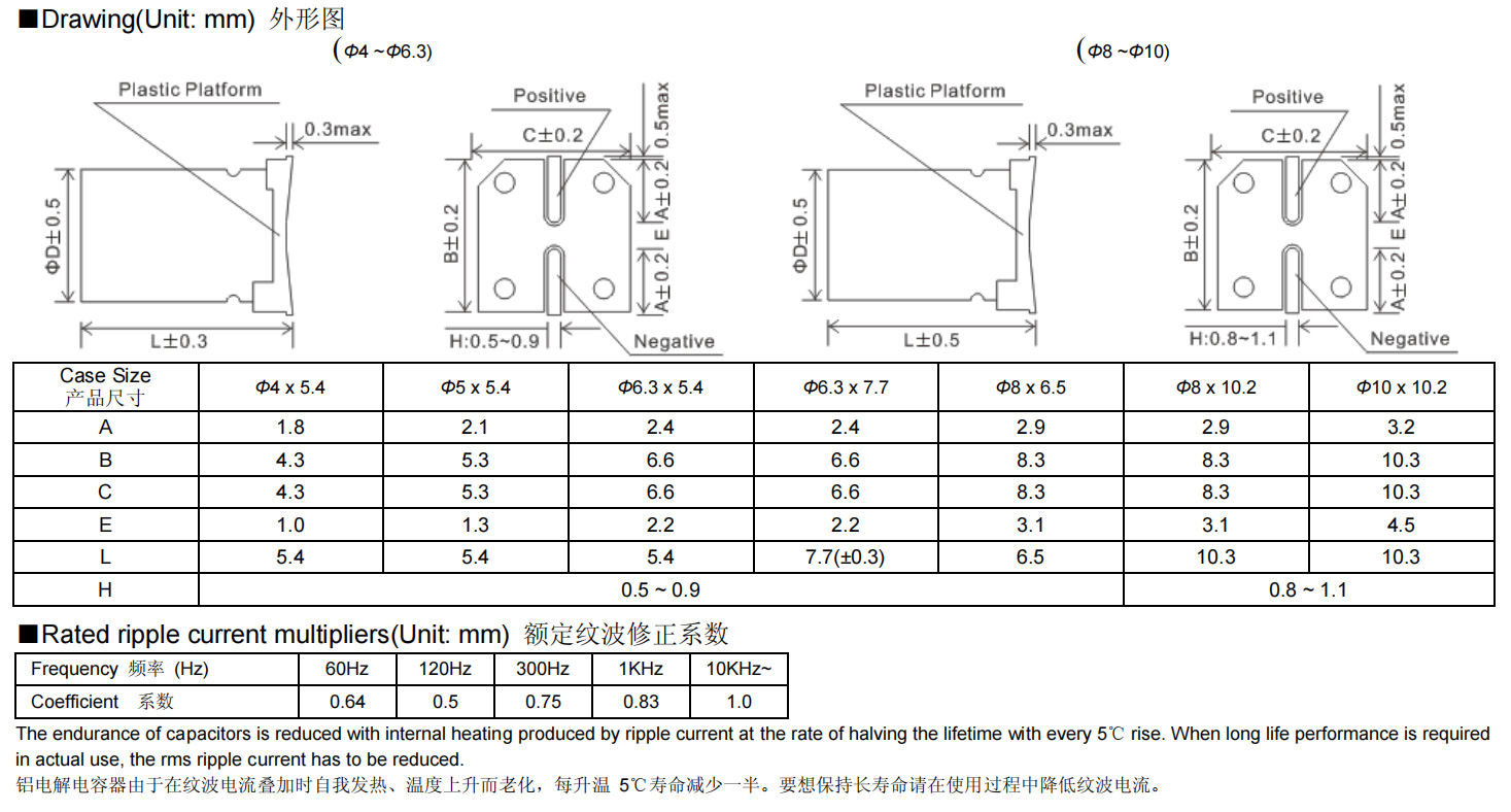 ● 105℃, 低阻抗, 负荷寿命 2000 小时。